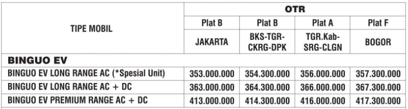 HARGA WULING BINGUO EV
